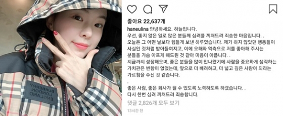 학폭 논란 하늘 사과문 게재 철없는 과거 만나서 사과하고파